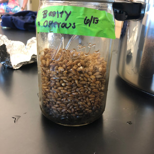 We hypothesize that the pressure cooker ran dry due to a shortage of water. We also assume our jars were too large for the cooker and that taking the tray out of the bottom exposed the jars to too much direct heat. For our next attempt, we plan to purchase smaller jars and add a larger quantity of water before sterilization. We will start from scratch next week with new grains.